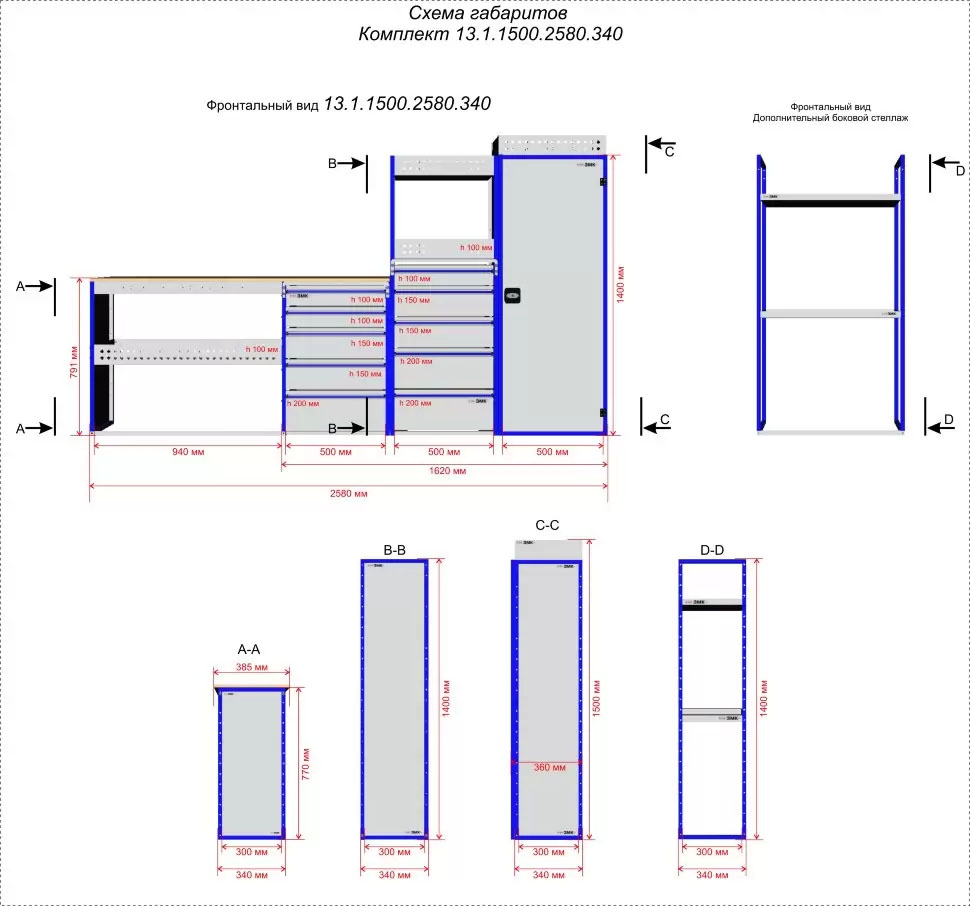 Состав: Верстак АМ, Стеллаж АМ, Стеллаж с тумбой АМ, Шкаф АМ